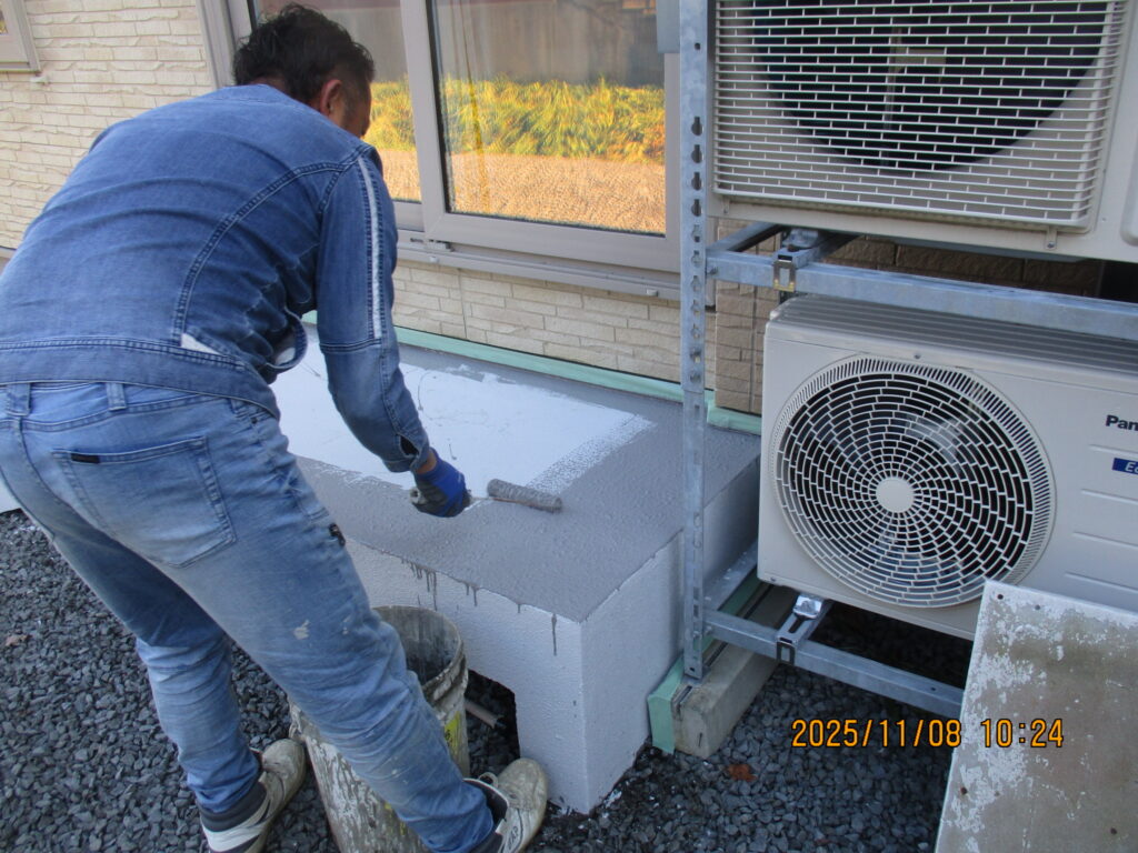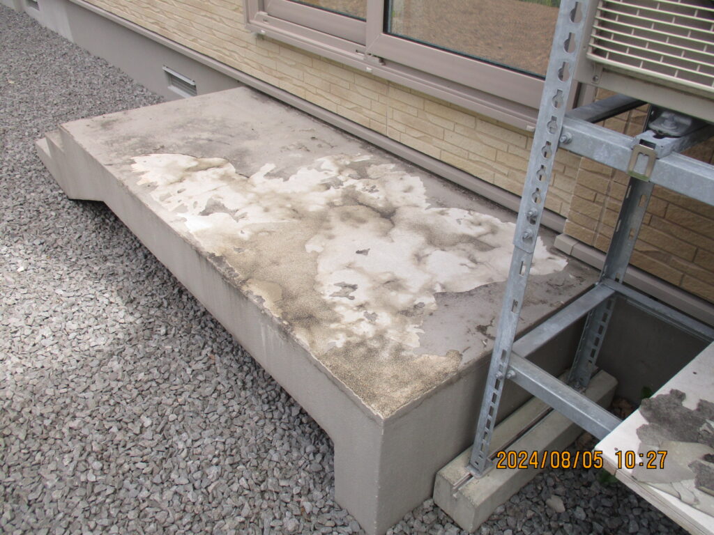 テラス仕上げモルタルの塗り直しを行いました。