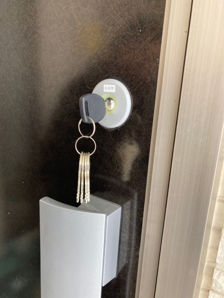 交換完了です。鍵は全部で5本あります。合鍵も作れますが、ご心配の方はシリンダー交換をお勧めします。